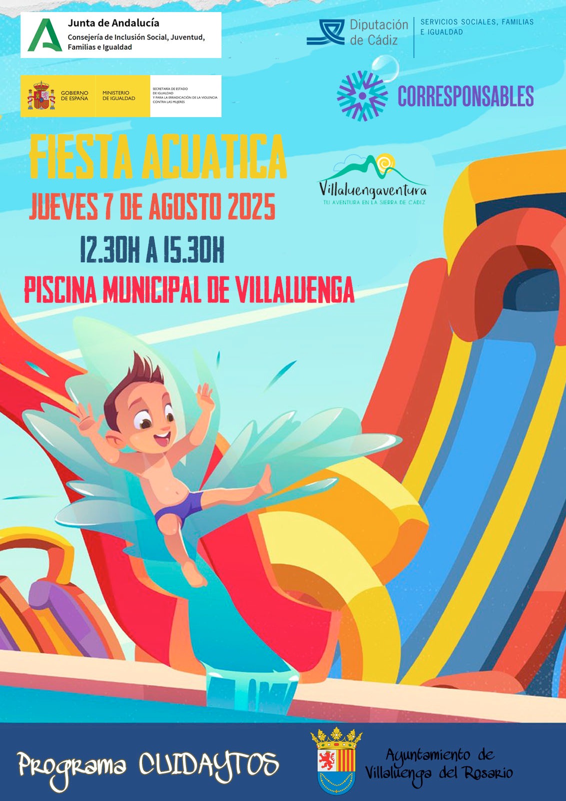 Mañana jueves 7 de agosto, la piscina municipal se convertirá en el escenario de una increíble fiesta acuática. Desde las 12:30 h hasta las 15:30 h, te animamos a disfrutar de juegos, chapuzones y más sorpresas para toda la familia.