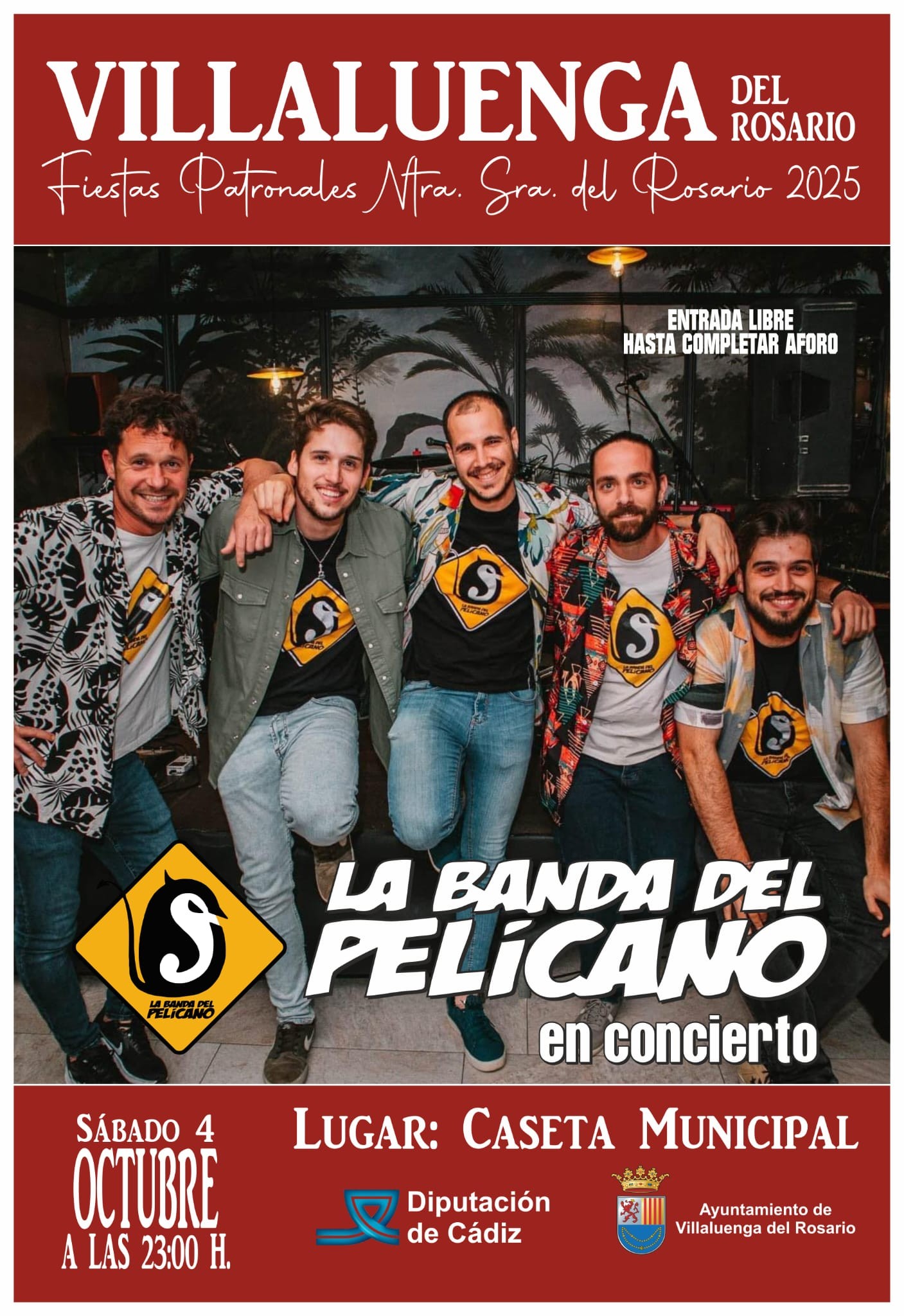 El próximo sábado 4 de octubre, la Caseta Municipal se llenará de ritmo y diversión con el concierto de La Banda del Pelícano 🦩🎶.