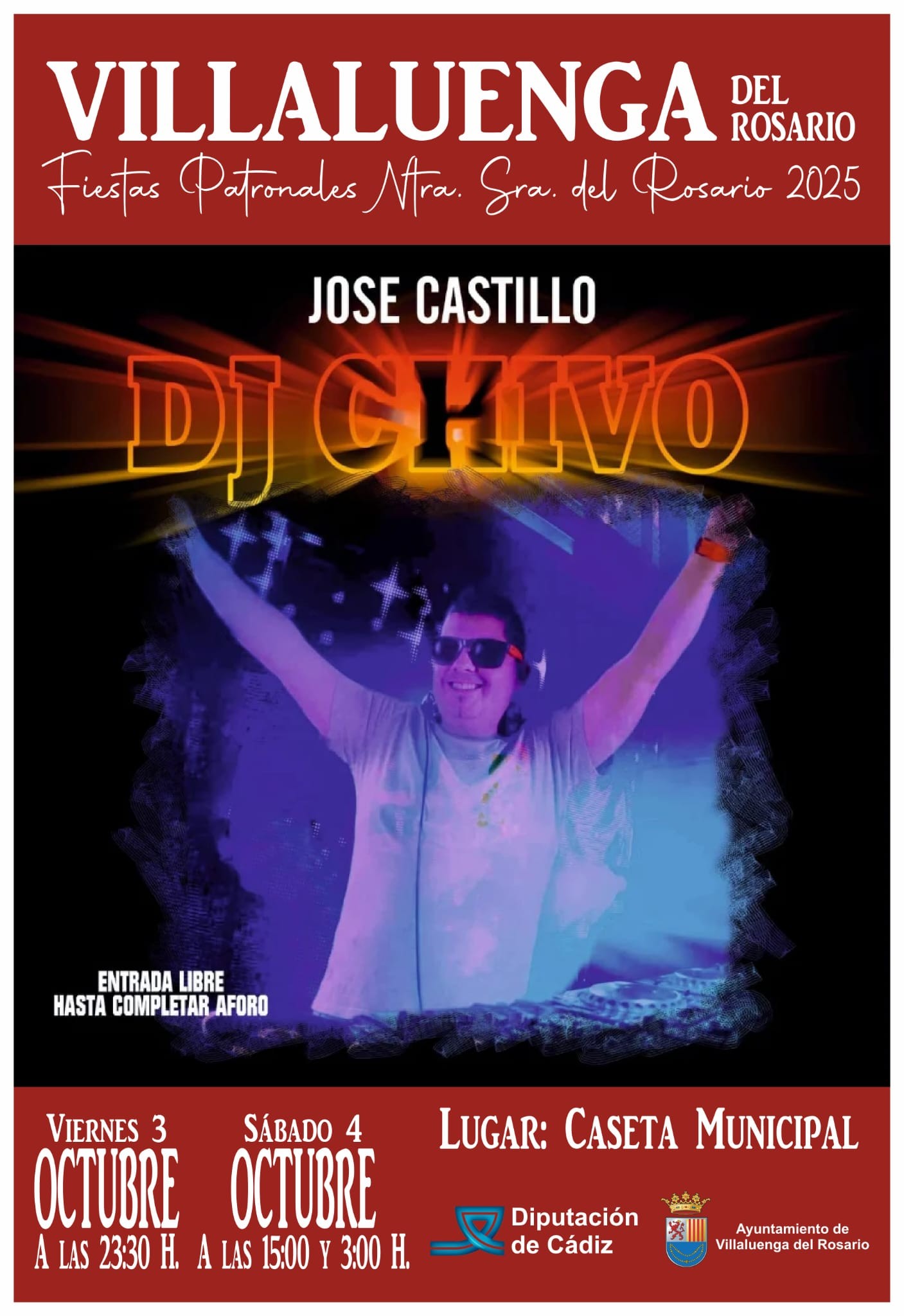 Dentro de la programación de nuestras Fiestas Patronales en honor a Ntra. Sra. del Rosario 2025, llega a la Caseta Municipal el ritmo y la energía de DJ Chivo 🎶.