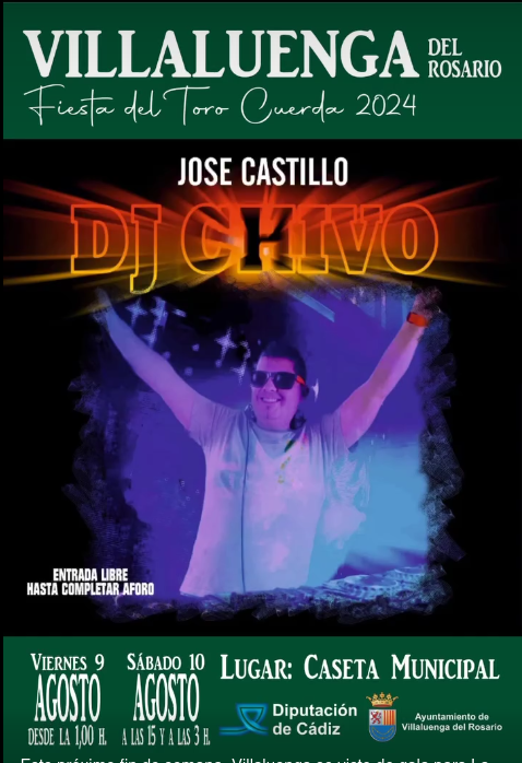 DJ Chivo en Villaluenga del Rosario el próximo viernes 9 y 10 de Agosto en la Caseta Municipal.