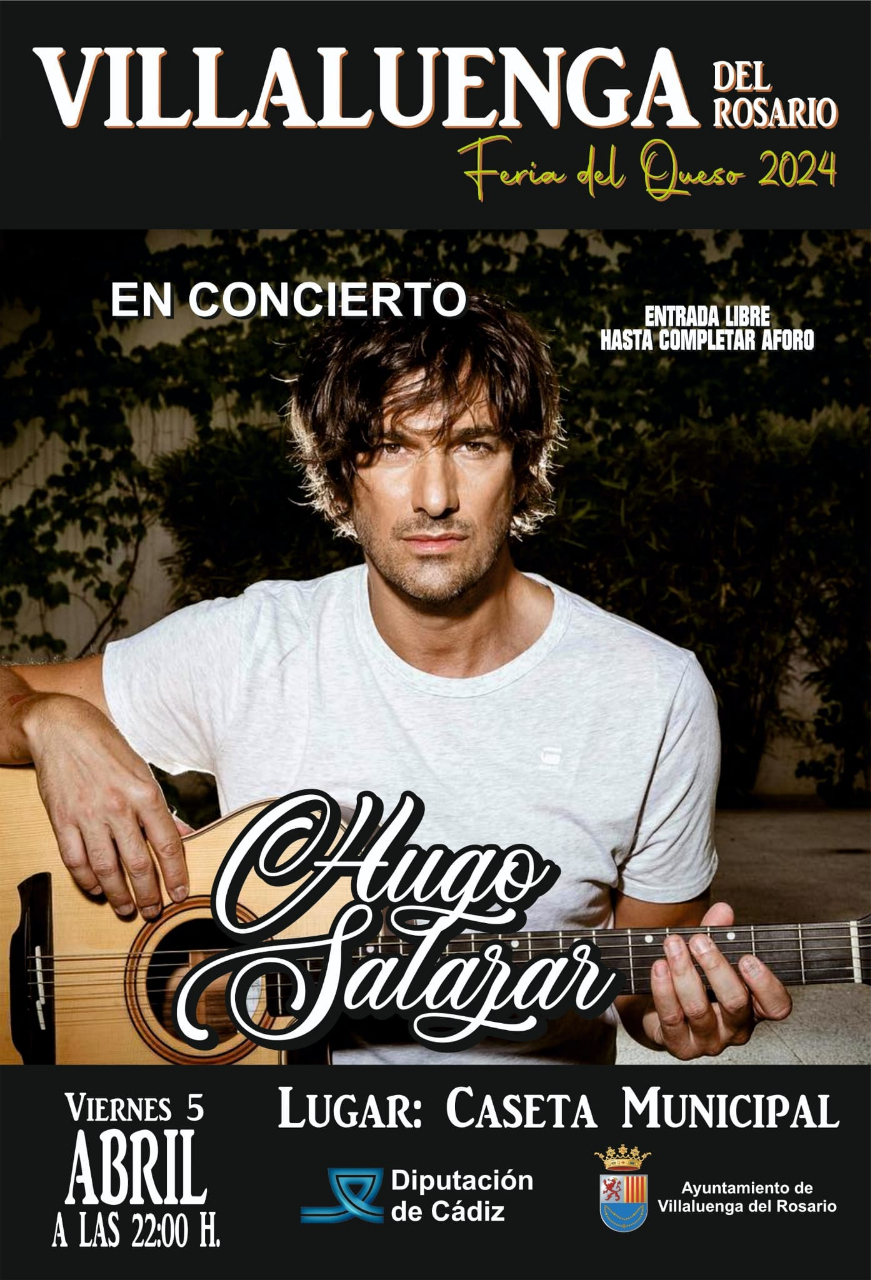 El viernes 5 de Abril, a partir de las 22:00 horas, con motivo de la celebración de la XV Feria del Queso Artesanal de Andalucía tendrá lugar el concierto de Hugo Salazar en la Caseta Municipal de Villaluenga del Rosario, con entrada libre hasta completar aforo.