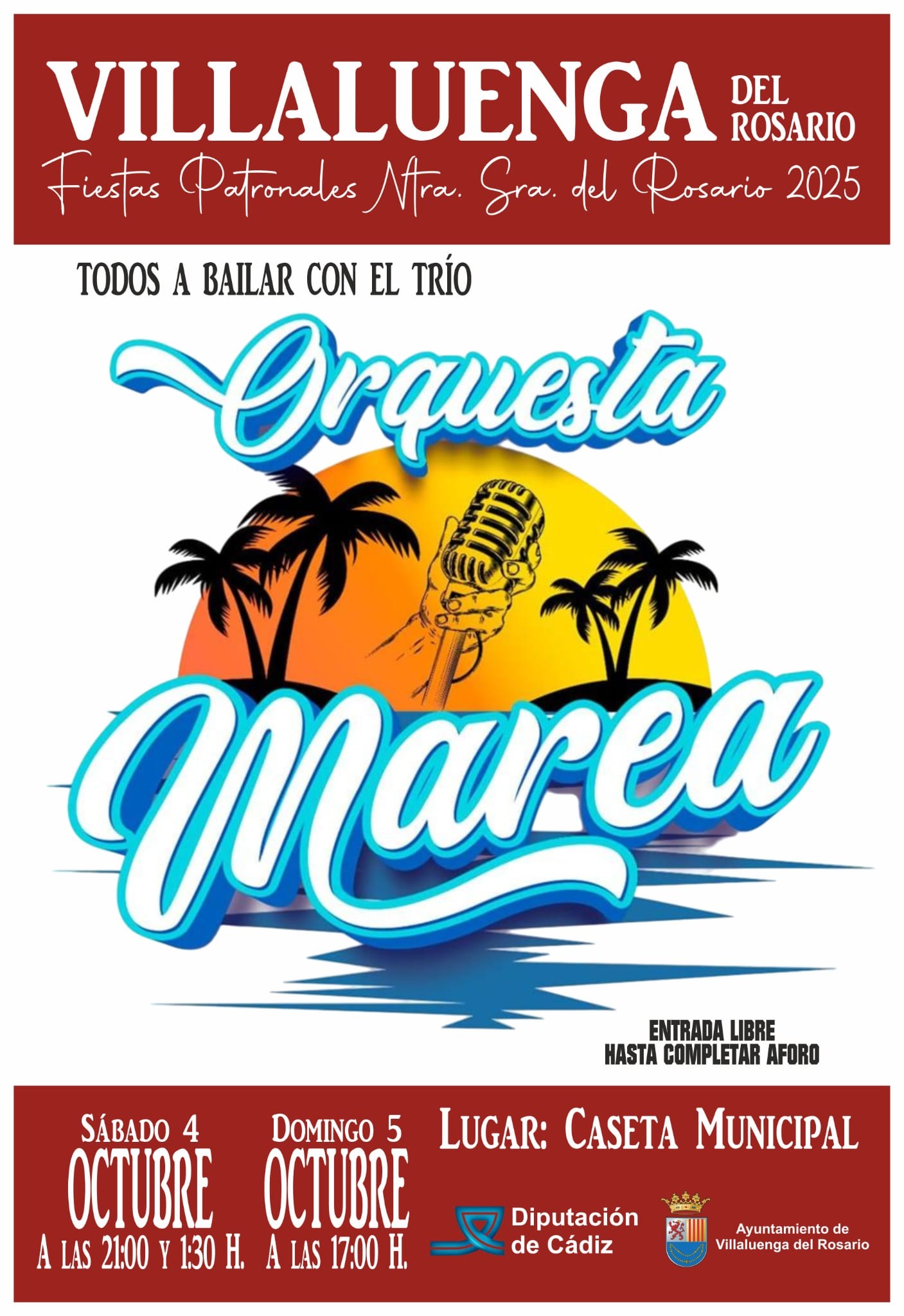 Dentro de las Fiestas Patronales en honor a Ntra. Sra. del Rosario 2025, la Orquesta Marea nos hará disfrutar con sus actuaciones cargadas de ritmo y diversión.