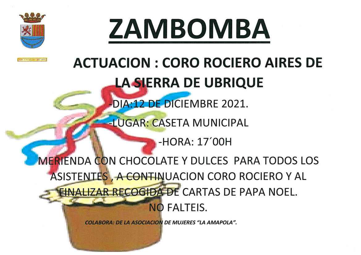 El próximo 12 de Diciembre a las 17:00 horas, en la Caseta Municipal de Villaluenga del Rosario, habrá una Zambomba a cargo del Coro Rociero Aires de la Sierra de Ubrique.