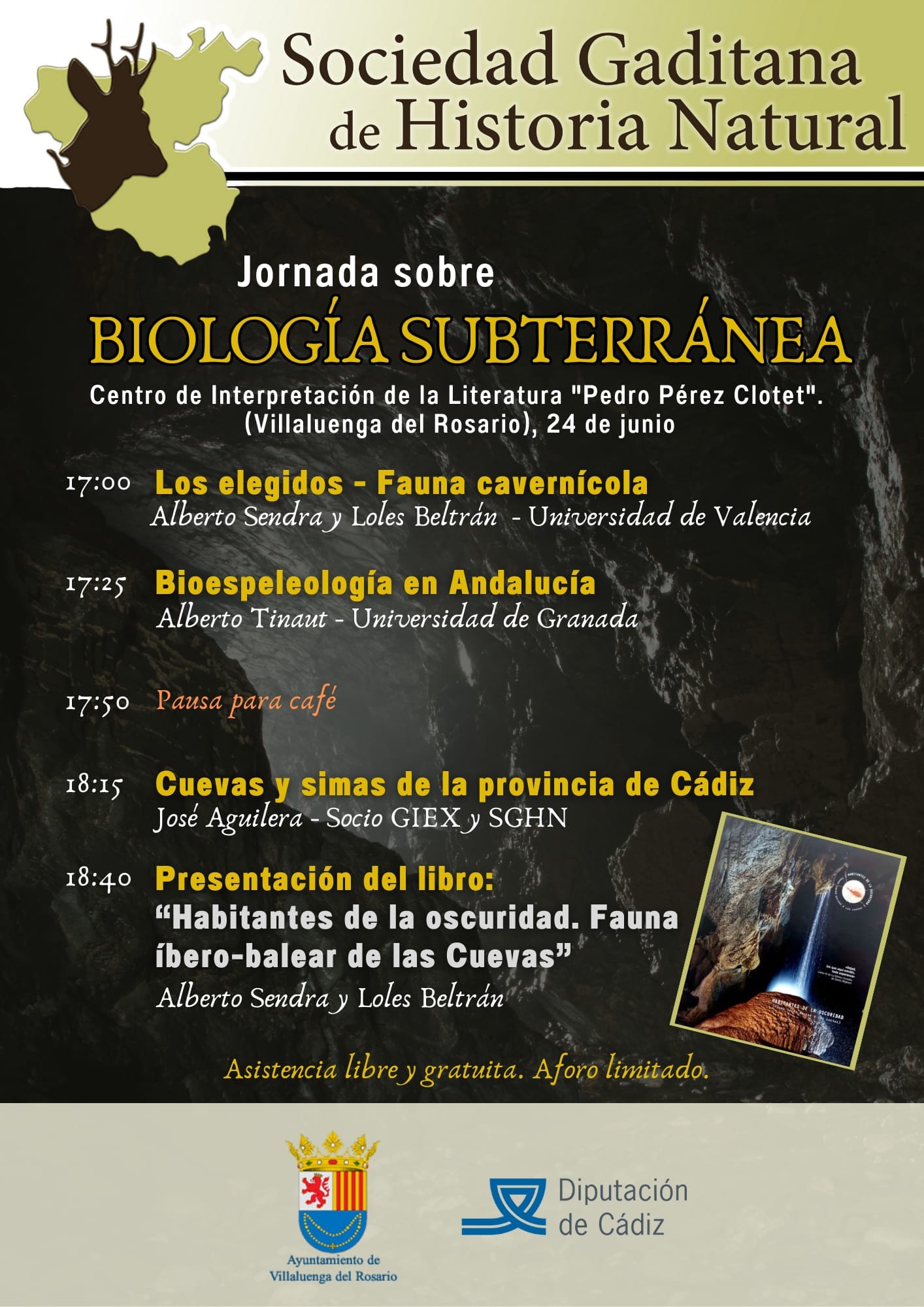 El próximo Sábado 24 de junio, Villaluenga del Rosario ha asido elegida sede para la Jornada de Biología Subterránea de la Sociedad Gaditana de Historia Natural, que tendrá lugar en el Centro de Interpretación de la Literatura "Pedro Pérez Clotet".