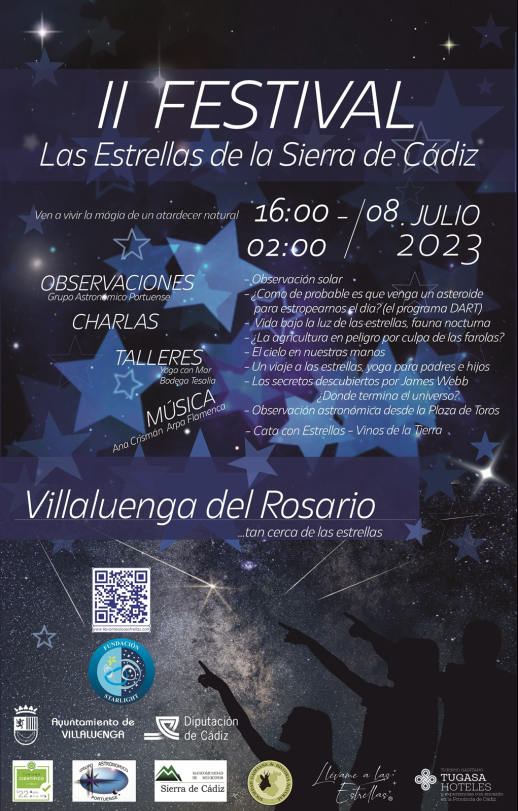 El II Festival " Las Estrellas de la Sierra de Cádiz" tendrá lugar en Villaluenga del Rosario el próximo Sábado 8 de Julio, con una amplia gama de actividades como Observaciones, Charlas, Talleres, Música, etc.