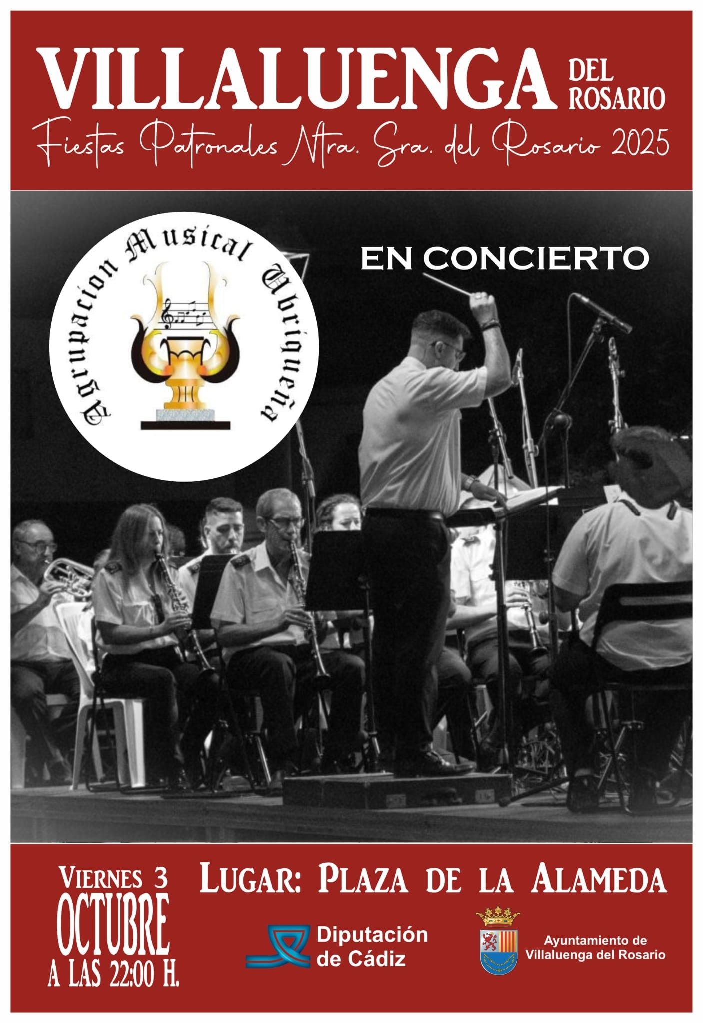 Con motivo de las Fiestas Patronales en honor a Ntra. Sra. del Rosario 2025, el Ayuntamiento de Villaluenga del Rosario organiza un concierto de la Agrupación Musical Ubriqueña.