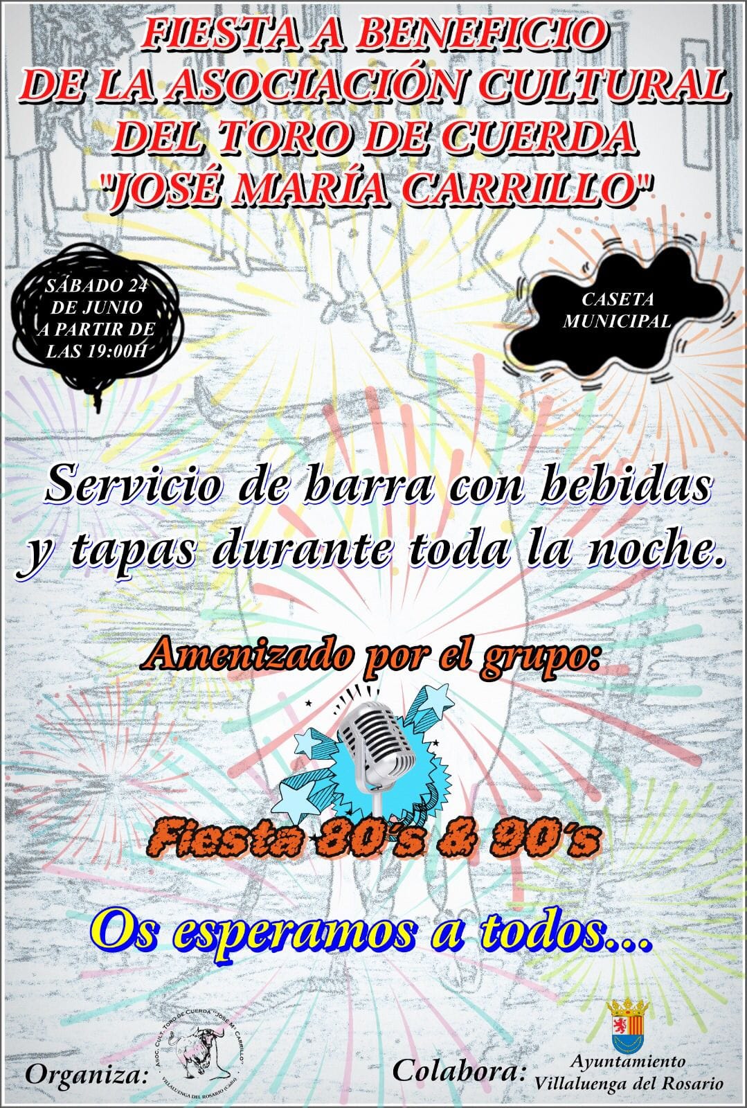 Fiesta a beneficio de la Asociación Cultural del Toro de Cuerda "José María Carrillo" de Villaluenga del Rosario, que tendrá lugar el próximo sábado 24 de Junio a partir de las 19:00 horas.