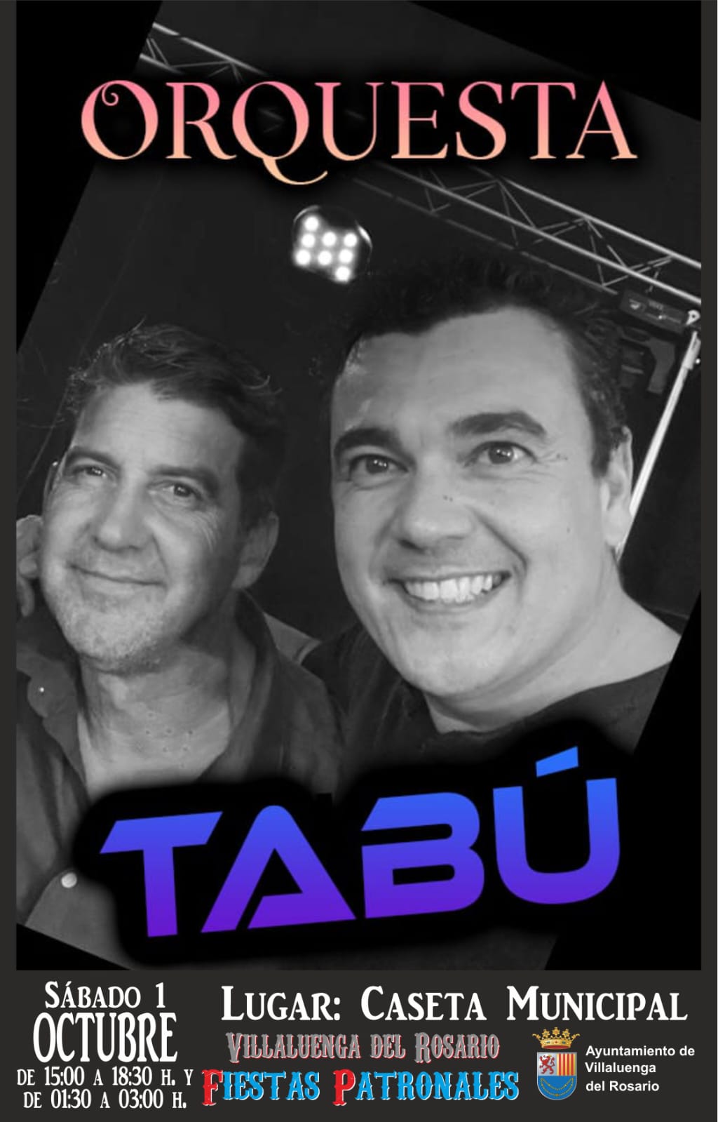 Orquesta TABÚ en Villaluenga del Rosario con motivo de sus Fiestas Patronales, el próximo 1 de Octubre de 2022.