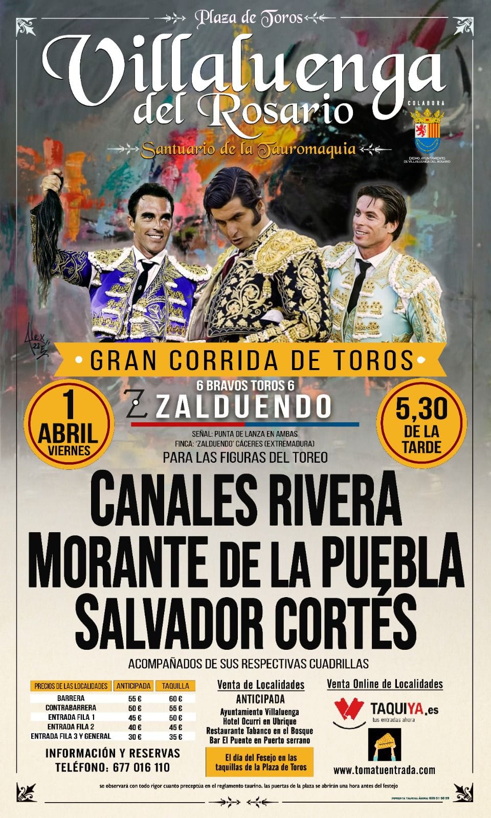 El próximo 1 de Abril, con motivo de la celebración de la Feria del Queso Artesanal de Andalucía de Villaluenga del Rosario, tendrá lugar una gran corrida de toros con Canales Rivera, Morante de la Puebla y Salvador Cortés.