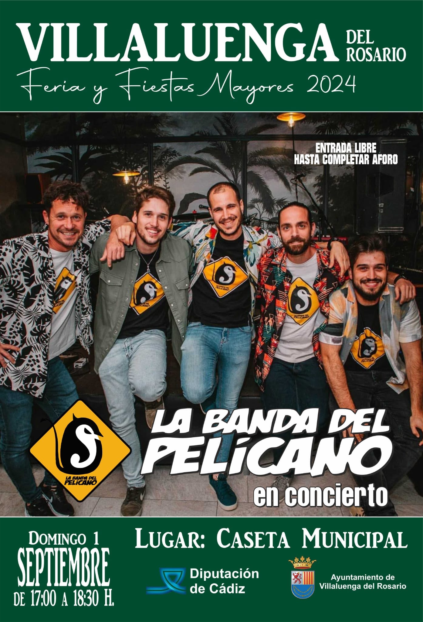 La Banda del Pelícano en Concierto en Villaluenga del Rosario el próximo Domingo 1 de Septiembre a las 17:00h en la Caseta Municipal, con entrada libre hasta completar aforo.
