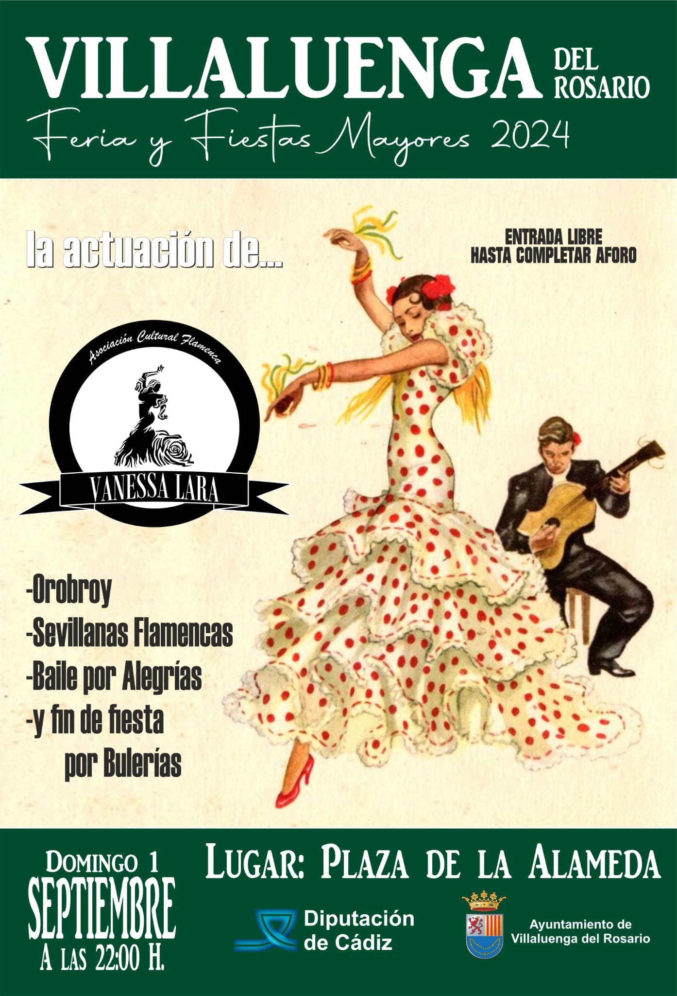 Actuación de Vanessa Lara en Villaluenga del Rosario el próximo Domingo 1 de Septiembre a las 22:00h en la Plaza de la Alameda, con entrada libre hasta completar aforo.