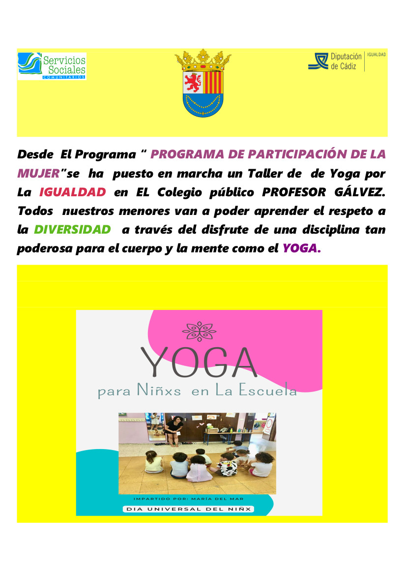 YOGA PARA NIÑOS Y NIÑAS EN LA ESCUELA Taller de Yoga por la Igualdad en el Colegio Público Profesor Gálvez de Villaluenga del Rosario.
