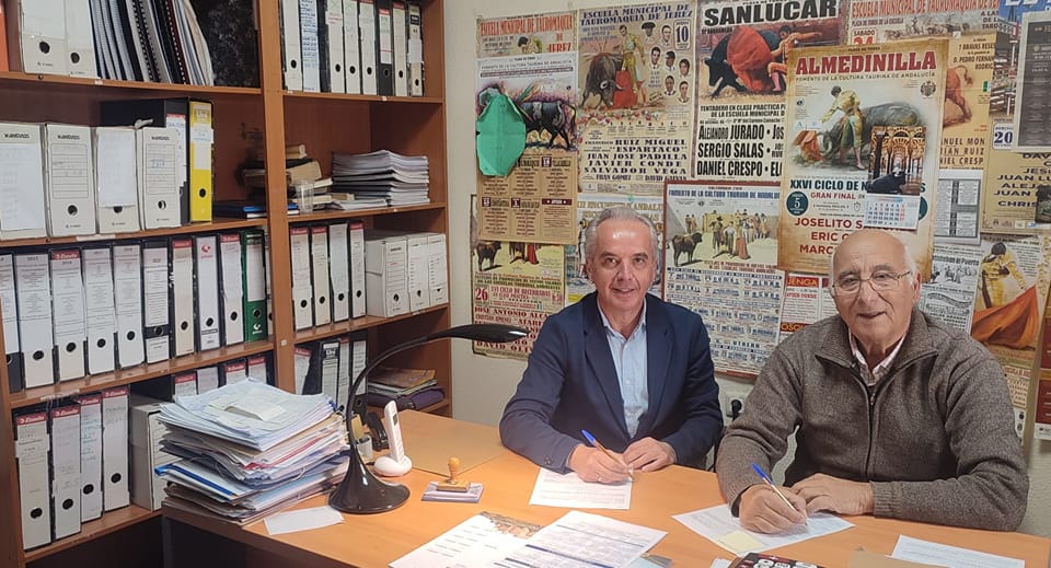 Firma del convenio del Ayuntamiento de Villaluenga del Rosario para el Fomento de la Cultura Taurina Andaluza 2023.