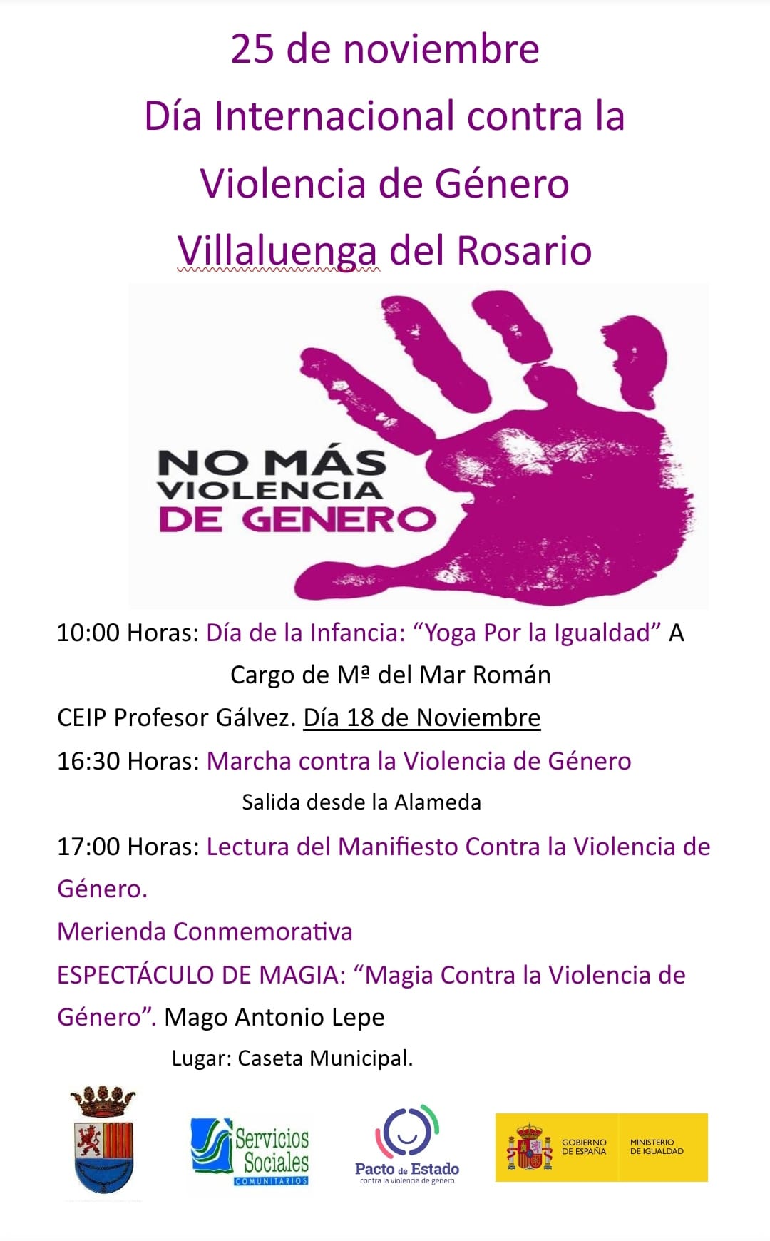 Hoy 25 de Noviembre se conmemora el Día Internacional de la Eliminación de la Violencia contra la Mujer, y el Ayuntamiento de Villaluenga del Rosario para rememorar dicho día organiza una serie de actos conmemorativos.