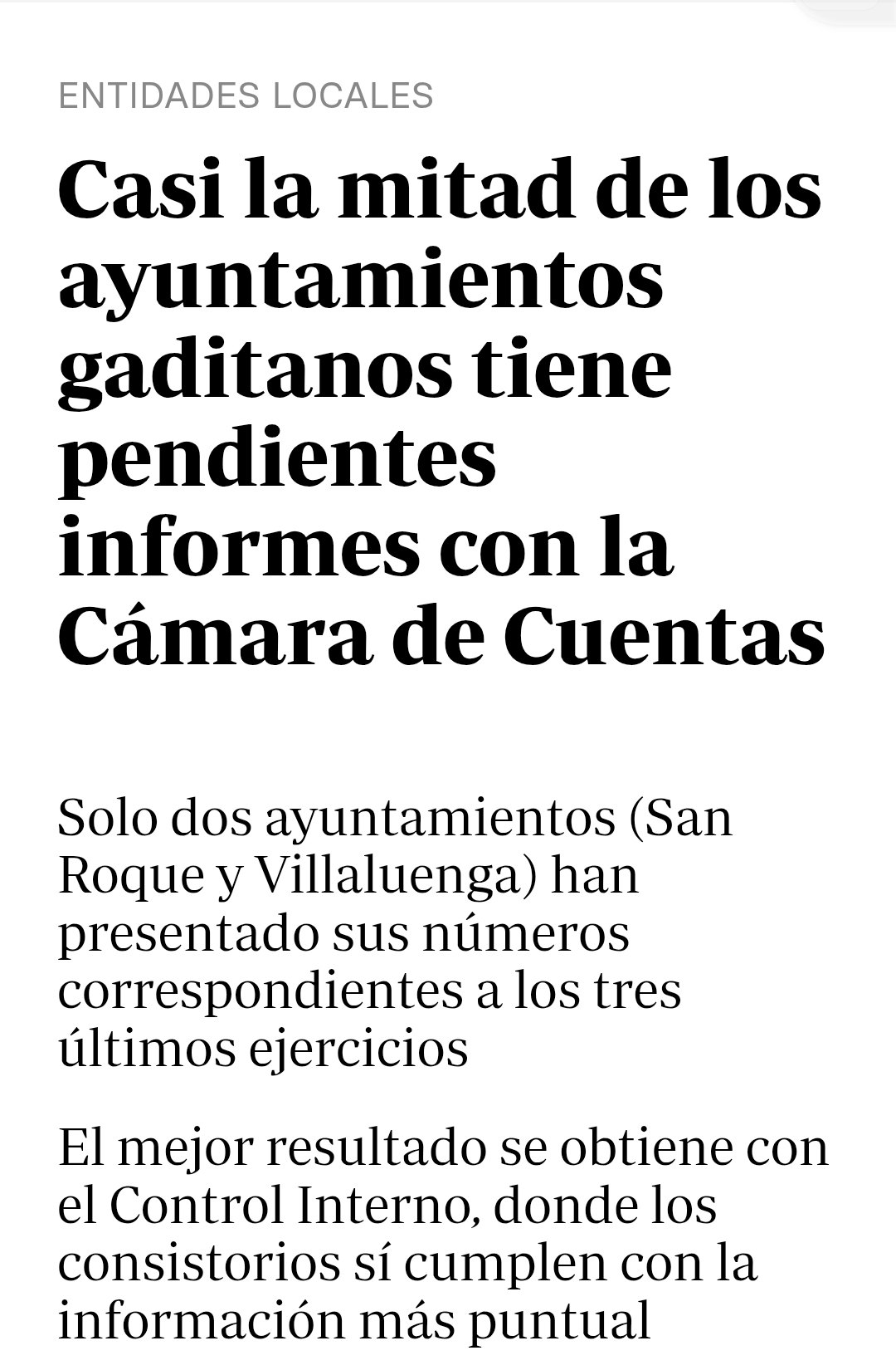Según publica la prensa, casi la mitad de los ayuntamientos gaditanos tiene pendientes informes con la Cámara de Cuentas. Sin embargo, solo dos municipios han cumplido con la presentación de sus números correspondientes a los tres últimos ejercicios: San Roque y Villaluenga del Rosario. ✅