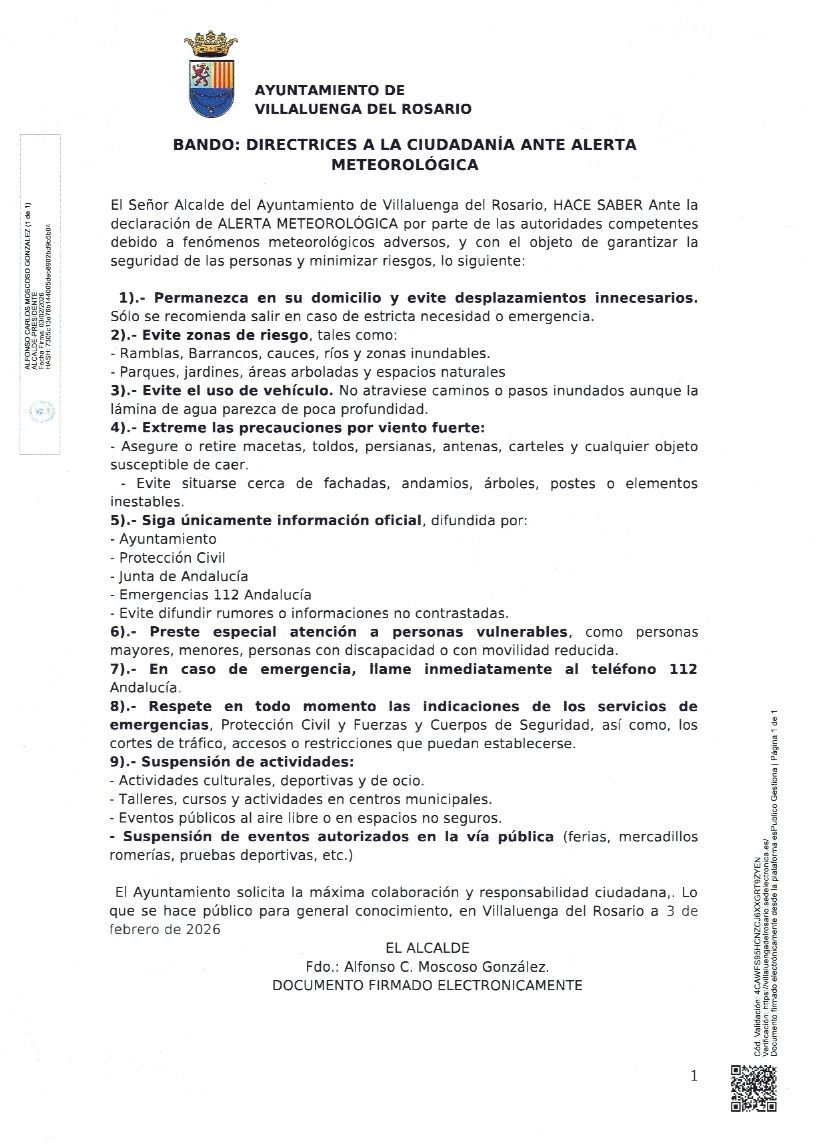 BANDO MUNICIPAL: DIRECTRICES A LA CIUDADANÍA ANTE LA ALERTA METEOROLÓGICA