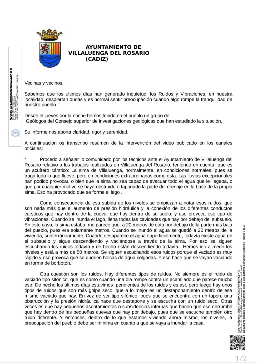 NOTA INFORMATIVA: RESUMEN DE LA INTERVENCIÓN DE LOS GEÓLOGOS EN VILLALUENGA