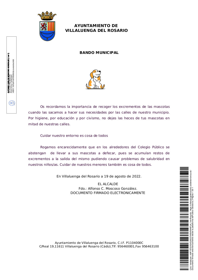 BANDO MUNICIPAL: RECOGIDA EXCREMENTOS DE MASCOTAS