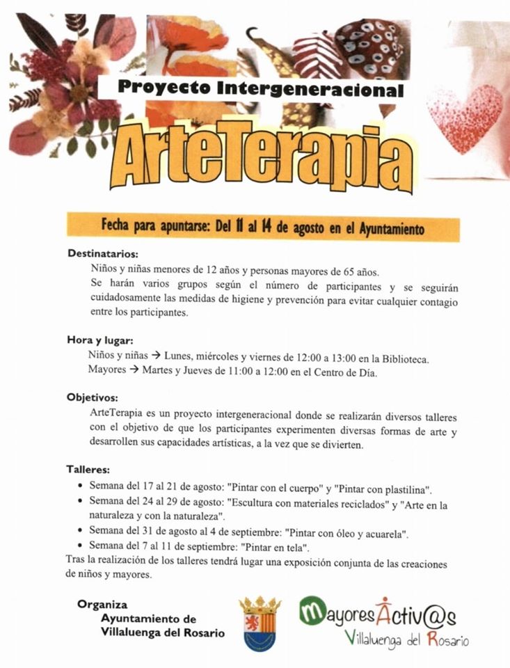 El Ayuntamiento de Villaluenga organiza el taller gratuito intergeneracional de Arteterapia que se desarrollará del 17 de Agosto al 11 de Septiembre de 2020.